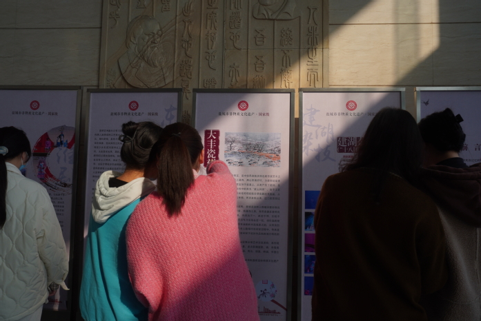 数学与应用数学20(3)班张慧慧看完展览后感慨道:“文化成就未来,遗产不容忘怀,这次的巡展让我对盐城的非物质文化遗产有了更多的了解,更加深刻地感受到了华夏文化的博大精深,我们新时代青年学子要一起手牵手保护文化遗产,心连心共筑精神家园。”