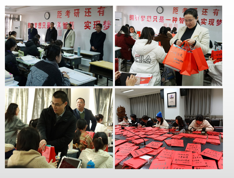 12月2日,公司领导老师来到考研教室为考研学子们加油打气。公司党委书记接玉芹向学子们表达了关怀和期望,从备考心态、日常作息、材料准备等方面提出了具体要求,鼓励大家在最后阶段要顶住压力,以“咬定青山不放松”的韧劲,全力拼搏每一天。党委副书记、经理姜海波鼓励同学们保持良好心态,提高学习效率,注意劳逸结合,以积极、轻松的状态面对考试。随后,公司领导老师送上精心准备的“考研加油包”和温馨的祝福,祝愿考研学子取得好成绩。