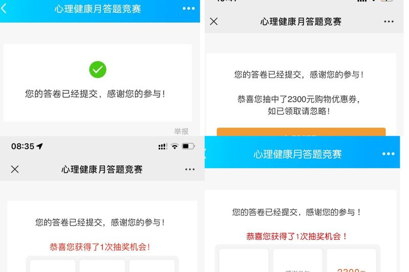 本次竞赛是通过答题的形式来了解同学们对心理健康知识的认识,其主要目的是通过竞赛使同学们在自我领悟、自我反省、自我提高的过程中,实现自我教育。活动的举办进一步地帮助同学们增强维护心理健康的意识,加强心理健康素质,为以后的学习和工作奠定了基础。