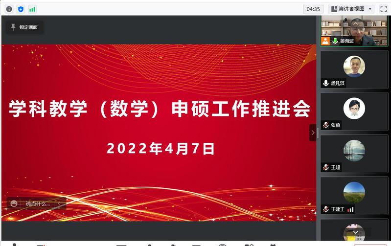 4月7日晚上,公司召开2023年学科教学(数学)申硕工作推进会线上会议,公司党委副书记于建江,团队建设办公室主任曹明,副主任王作雷出席会议,BETWAY必威党委副书记、经理姜海波主持会议。