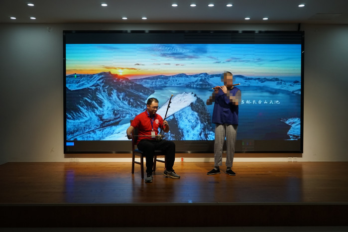 本次“赠书寄语”创新活动形式,让在押青少年走上舞台与老员工志愿者一起进行文艺表演,通过一起表演、一起活动,让在押青少年在朋辈之间找到榜样的力量。数统院志愿者们在文艺汇演的过程中向未成年在押人员演绎青春风貌、绘写青春蓝图、给予青春祝福。