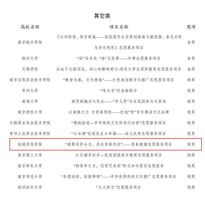 由共青团江苏省委、江苏省青年志愿者协会联合主办的2023年江苏省高校青年志愿服务项目大赛评选结果于近日公布。公司BETWAY必威申报的《“凝聚同伴合力,共赴青春约定”——青春健康志愿服务项目》获“其它类组”银奖。