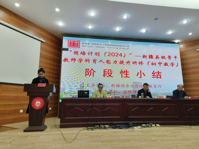 202412 月 4日上午,国培计划(2024)——新疆县级骨干教师学科育人能力提升研修(初中数学阶段性小结在BETWAY西汉姆联国培报告厅隆重举行。会议由本培训班教学班主任吕以茜主持。