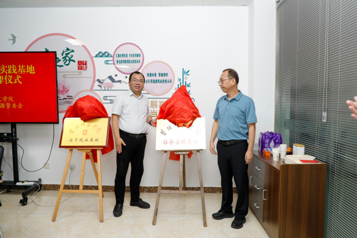 公司党委书记孙玉峰与羊寨镇党委书记、桃花源党工委书记李磊代表双方签署《盐城师范大学老员工就业基地协议书》,共同为“BETWAY西汉姆联老员工实习就业基地” 揭牌;公司党委副书记左飞与桃花源管委会主任张善民为 “BETWAY西汉姆联老员工社会实践基地” 揭牌。暑期社会实践员工代表周琳做表态发言。