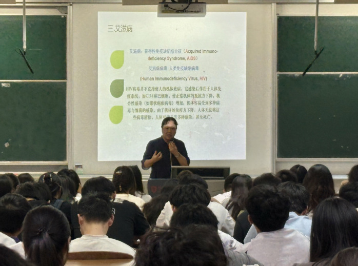 张跃敏围绕“科学防控流行病,守护青春校园”这一主题,结合高校人员密集特点展开讲解。针对秋冬流感,解析病毒变异、传播途径与典型症状,强调“勤洗手、常通风、戴口罩、种疫苗”的预防作用,结合案例说明延误就医危害并传授护理方法;聚焦肺结核防控,指出密闭空间聚集性风险,通过案例讲解“咳嗽咳痰超两周”等预警信号,详解治疗流程与卫生习惯要求;针对艾滋病,破除认知误区,用数据呈现高危因素,讲解传播途径与防护措施。讲座贯穿“四早”原则,经互动问答将专业知识转化为实操技能。