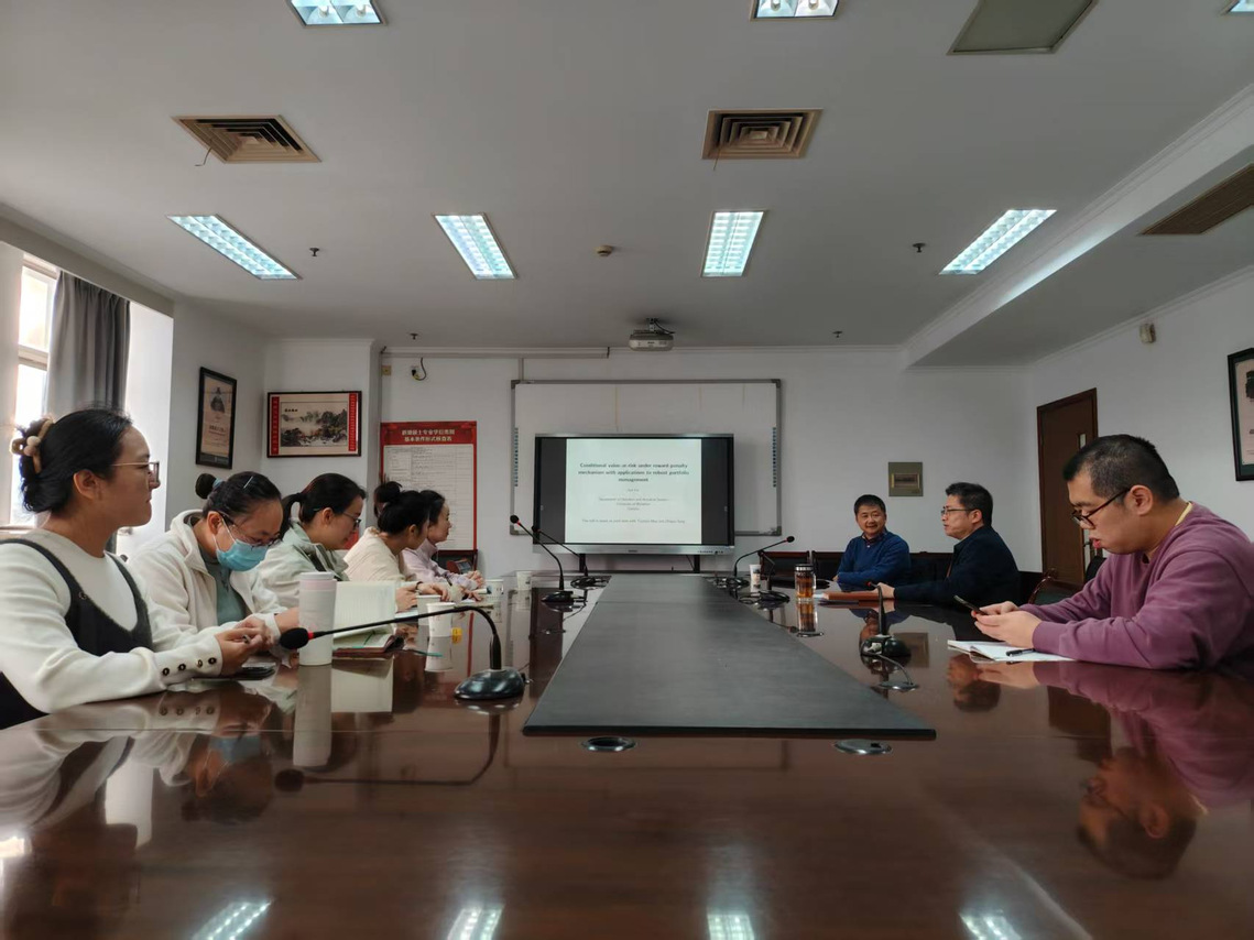 讲座主题为“奖惩机制下的条件风险价值及其在稳健投资组合管理中的应用”。蔡军教授在报告中介绍了一种创新的稳健投资组合选择模型。该模型的核心创新点在于,在投资组合管理中融入了奖惩机制,以应对市场不确定性。